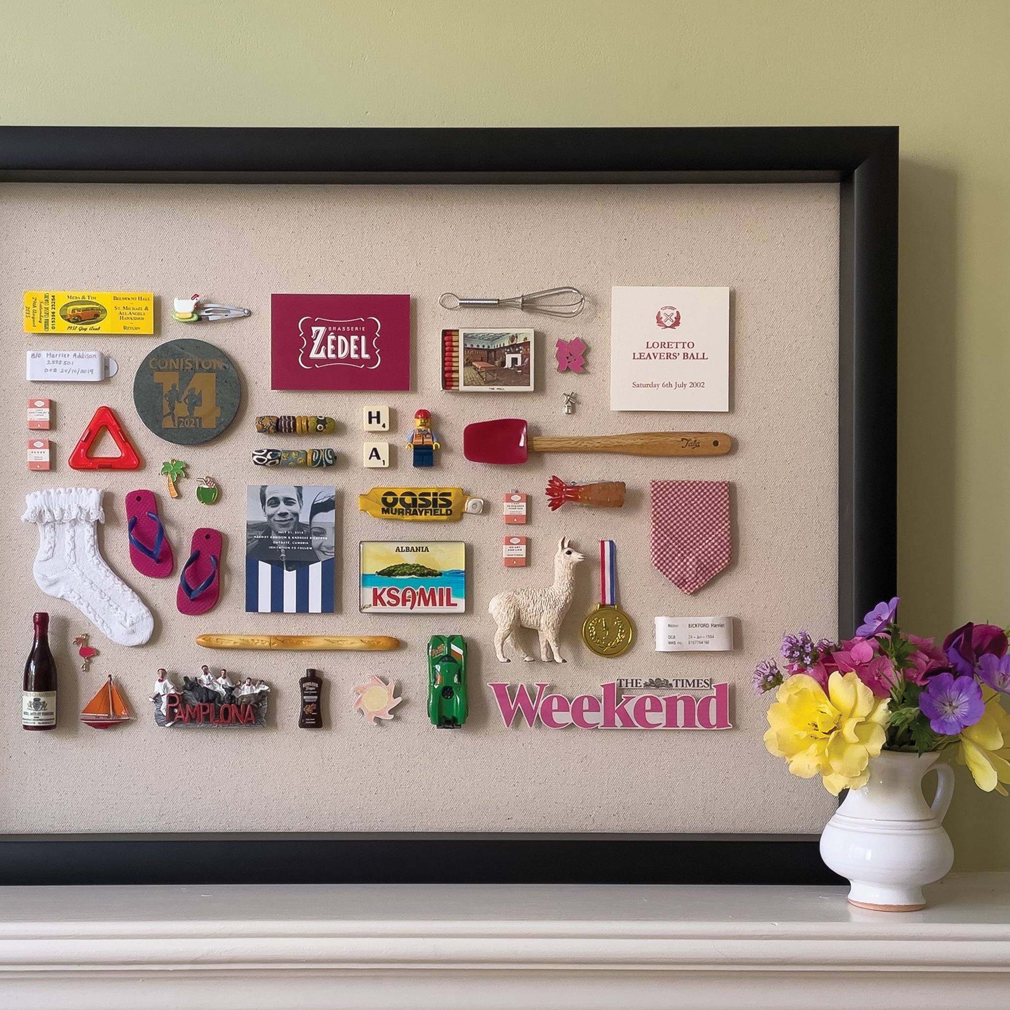 This large, matte black-framed Memory Box was commissioned as a 40th birthday present. It housed a collection of keepsakes and mementoes sent in by 25 friends and family members to celebrate share...
