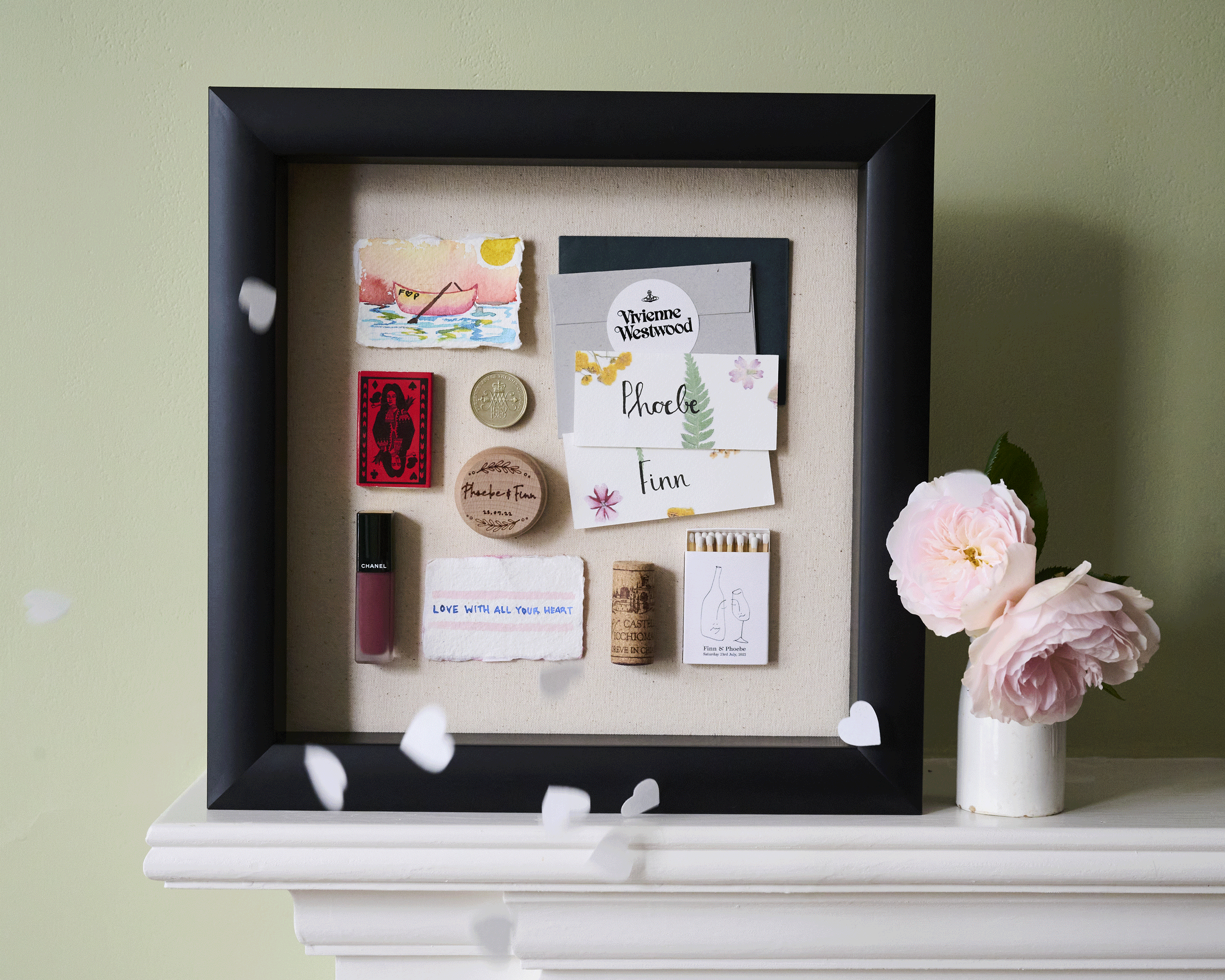 The result? A stunning, matte-black-framed Memory Box that transports Finn and Phoebe back to their wedding day each time they look at it. A treasured keepsake for a lifetime.